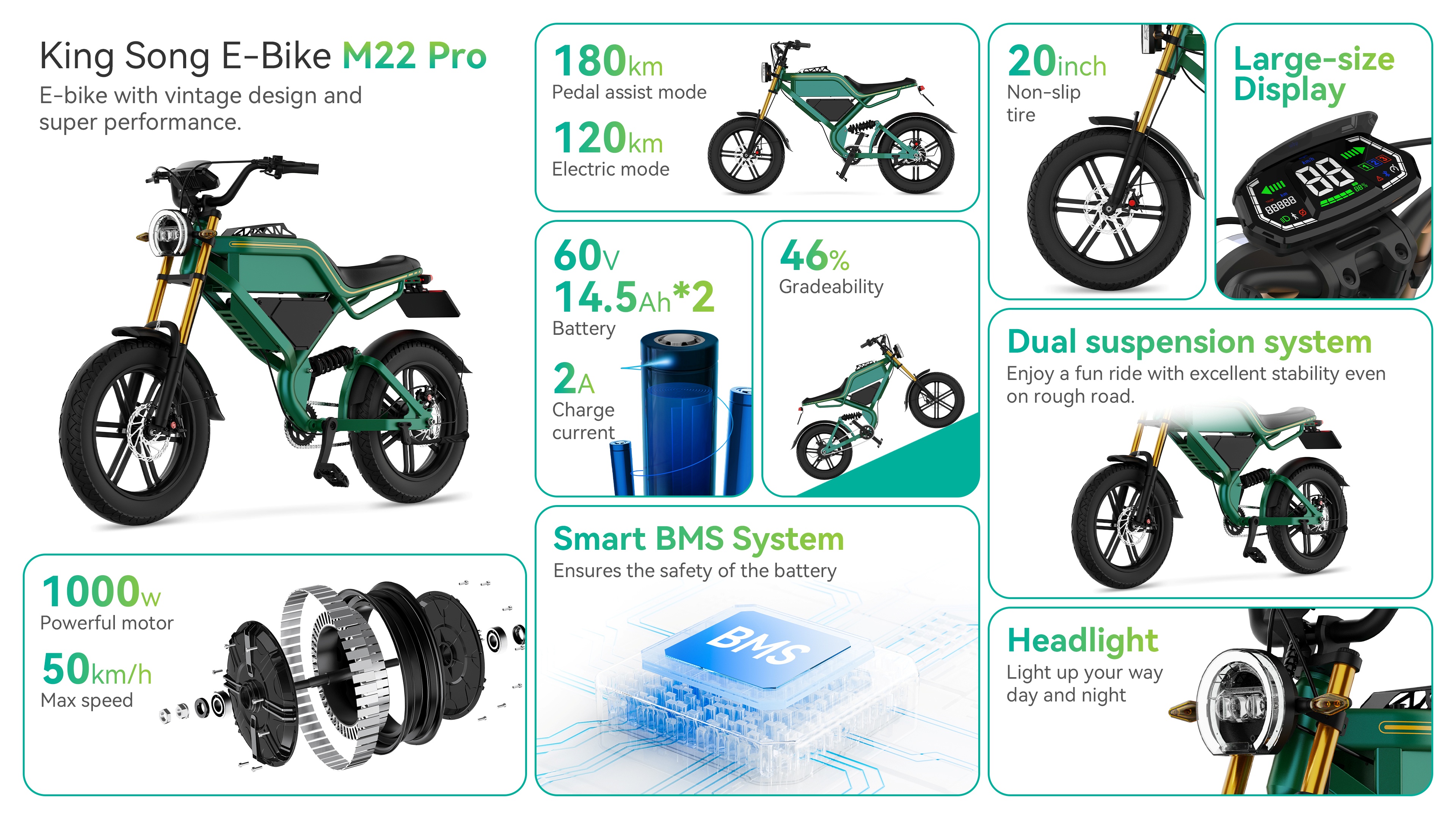 The M22 Pro stands out as a versatile, powerhouse e-bike that's perfect for adrenaline seekers and practical commuters alike—offering motorcycle-level performance in a pedal-assist electric package. Experience the freedom of effortless, long-distance riding with style and confidence!